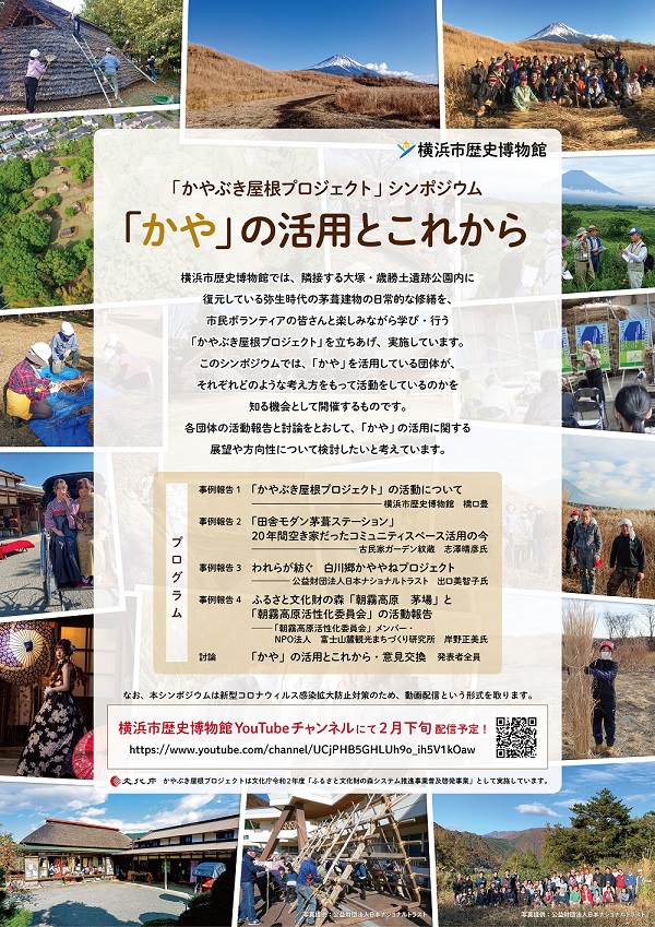 【シンポジウム動画配信のお知らせ】令和3年2月に行われた「かやぶき屋根プロジェクト」シンポジウム「「かや」の活用とこれから」の動画を配信します。 お知らせ 2021.03.02 -