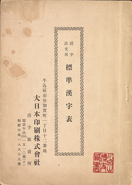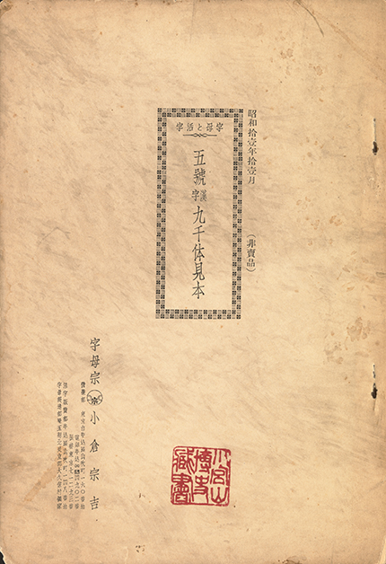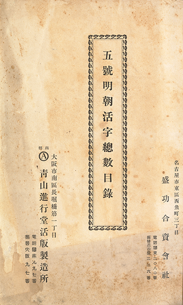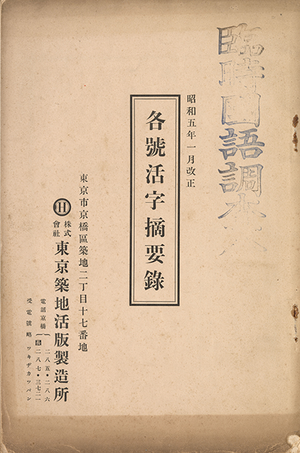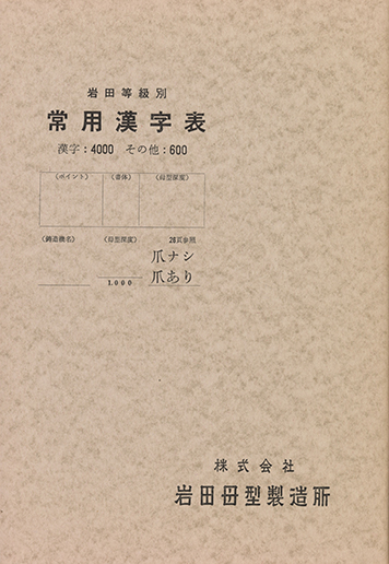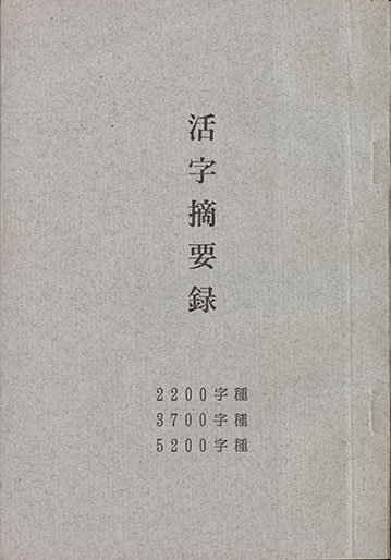 | 川橋母型製造所 | 『活字摘要録 2200字種 3700字種 5200字種』(発行年不明) |