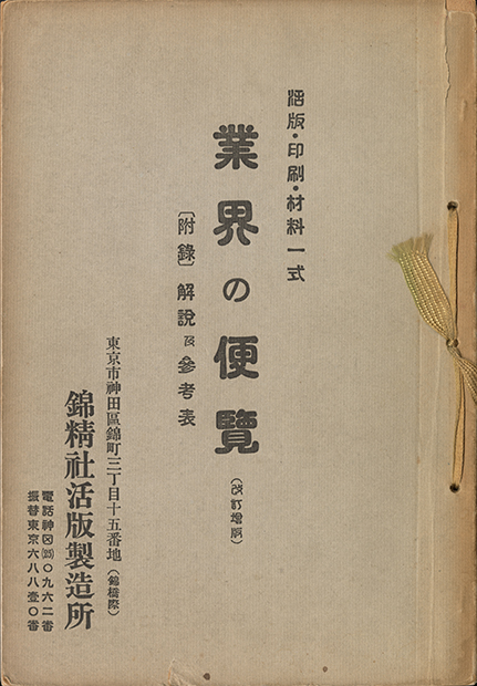 | 錦精社 | 『活版・印刷・材料一式 業界の便覧附録 解説及参考表 改訂増補』(1934) |