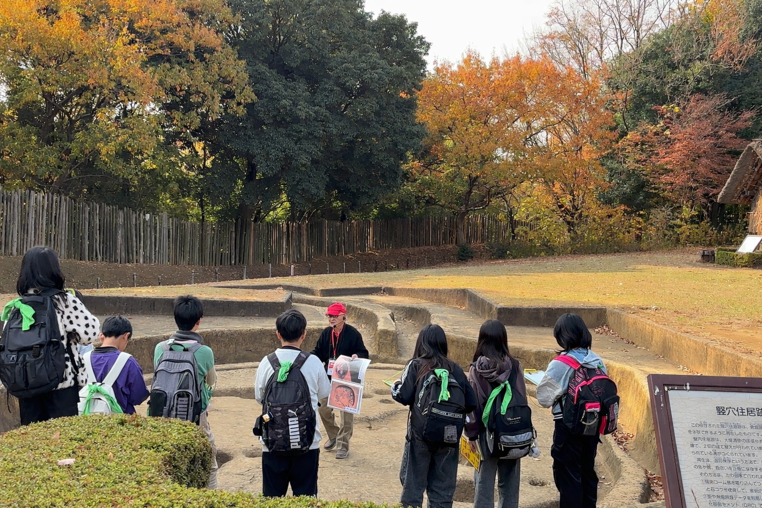 ①来館希望日時、②希望ガイド(遺跡ガイド(屋外)・常設展示ガイド(屋内)・両方)、③希望のスタート時間(終了時間も指定があれば)、④バスのご利用有無、⑤ご担当者のお名前と連絡先